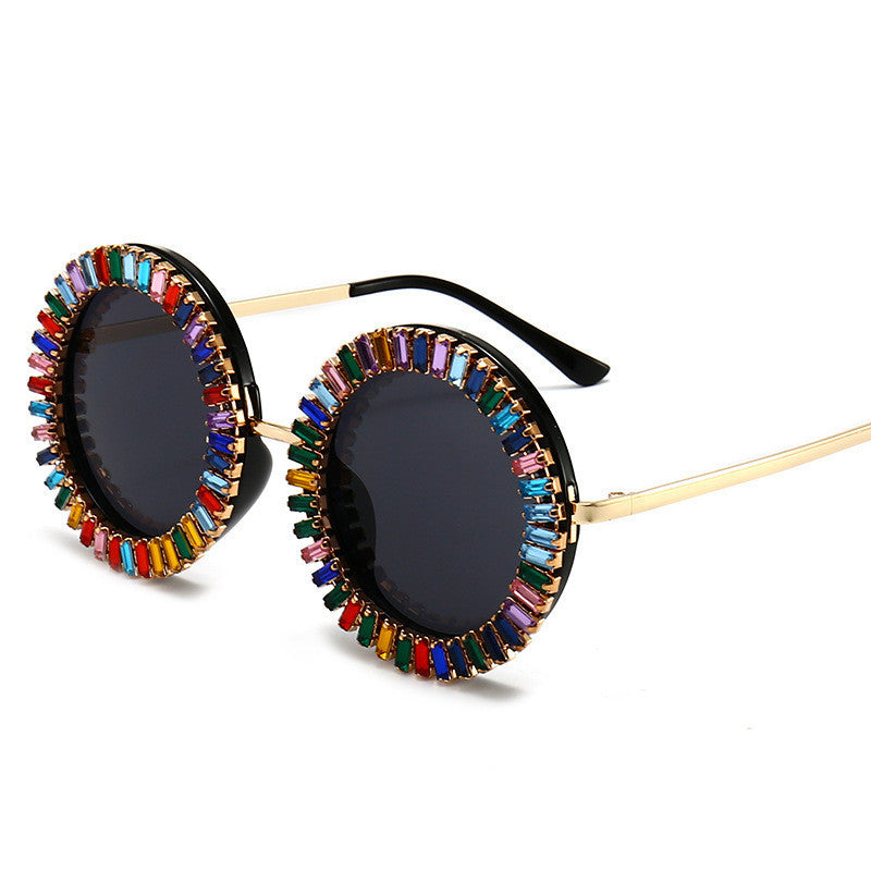 Ladies Fashion Personality Diamond Round Frame Sunglasses